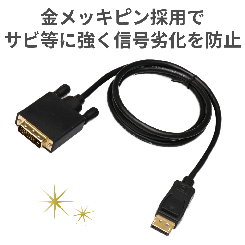 DisplayPort端子を搭載したパソコンの映像信号を変換し、DVI(DVI-D 24pin)入力端子を搭載したディスプレイなどに出力することができる変換ケーブル。
