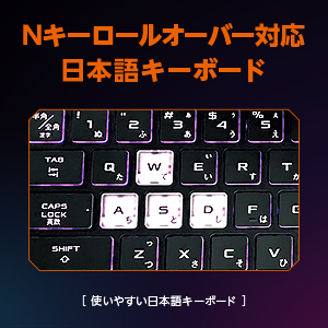 日本語キーボードを採用。慣れ親しんだ日本語配列で、ゲームだけでなくビジネスシーンにおいても大いに活用できます。さらに、タッチパッドはボタン一つで切り替えてテンキーとしても使用可能。全キー同時認識にも対応しているので、あらゆる場面で正確なキー操作が行えます。