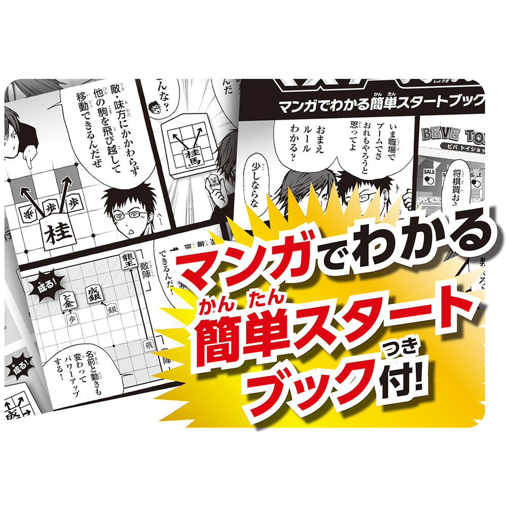 駒の動かし方がわかりやすく描かれているので、はじめてでもすぐに遊べる将棋です。