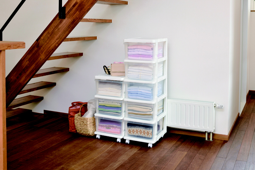 かんたんフックン 採用でつながるから使い方広がる! 子供部屋やクローゼットの整理にとっても便利!! フォルムがシンプルデザインなので、リビングでも大活躍!! キャスター付きで、クローゼットからの出し入れも簡単。シンプルなデザインでリビング収納としても大活躍。