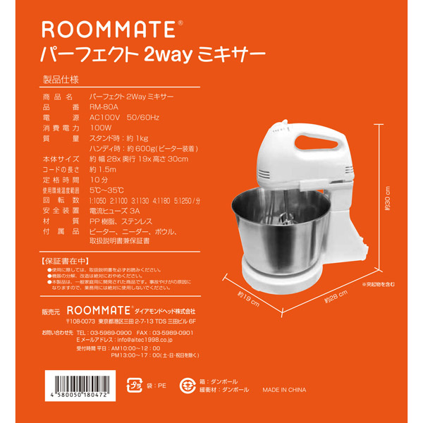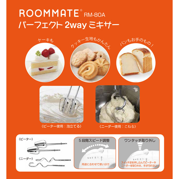 RM-80A ハンドミキサー ROOMMATE パーフェクト2Wayミキサー