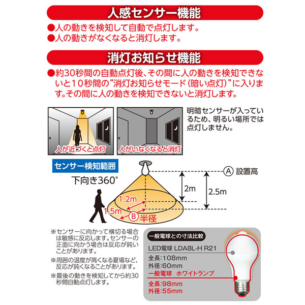 人感センサー機能付きLED電球です。