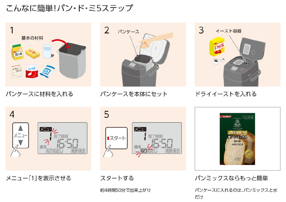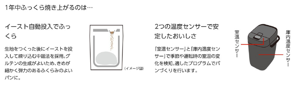 「ねり」「発酵」「焼成」を単独で設定できる「マニュアル機能」搭載。