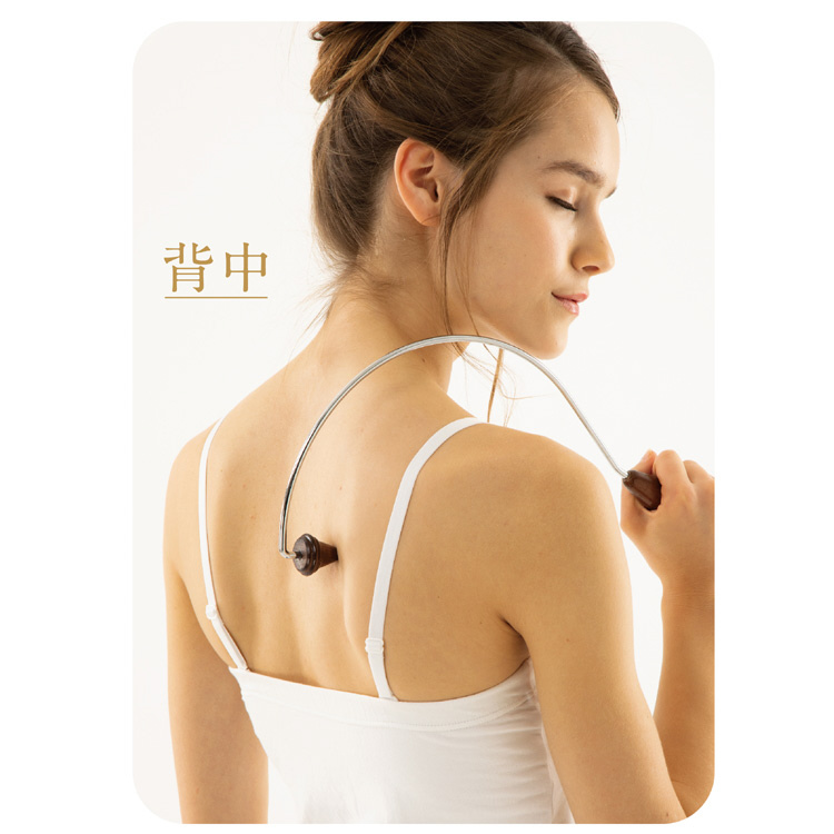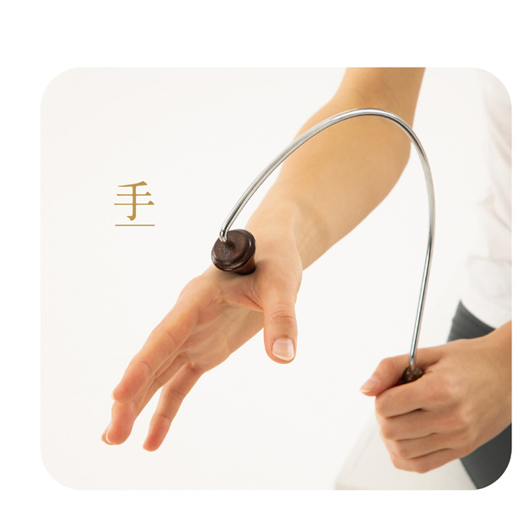 金属部分のアーチが大きく、肩甲骨周りなどの手の届かない場所も心地よく刺激出来るツボ押し棒。