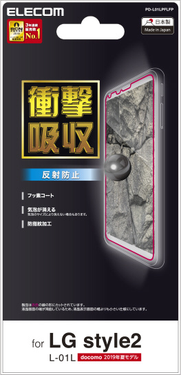 特厚シリコン層が衝撃を吸収し液晶画面を保護する、指紋防止・反射防止タイプのLG style2(L-01L)用衝撃吸収フィルムです。