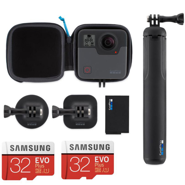 360度のビデオや写真を撮影する、GoProカメラ Fusion(フュージョン)にmicroSDカード(32GB)が2枚ついたお得セット。