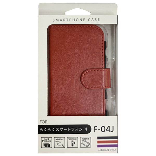 らくらくスマートフォン4用スタンド機能付き手帳型ケース BJSL-RRF04RD レッド