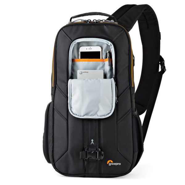 バッグを背面から正面に回すだけですぐにカメラが取り出せるスリングバッグ