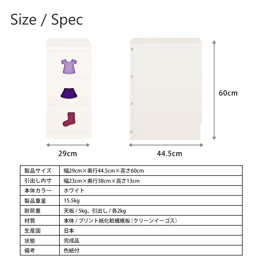 | 商品名 | おかたづけしたくなるチェスト 3杯 女の子用 JAJAN ホワイト TSC-29MGW |