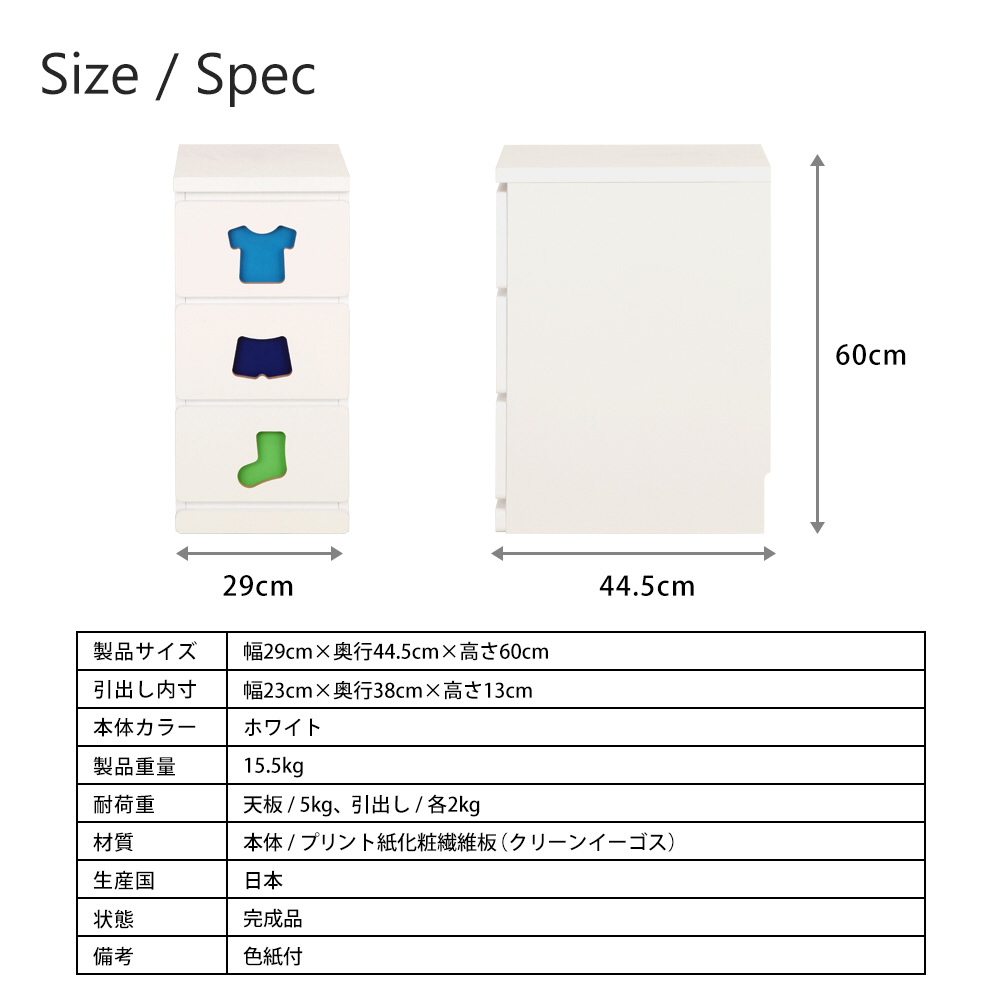 | 商品名 | おかたづけしたくなるチェスト 3杯 男の子用 JAJAN ホワイト TSC-29MBW |