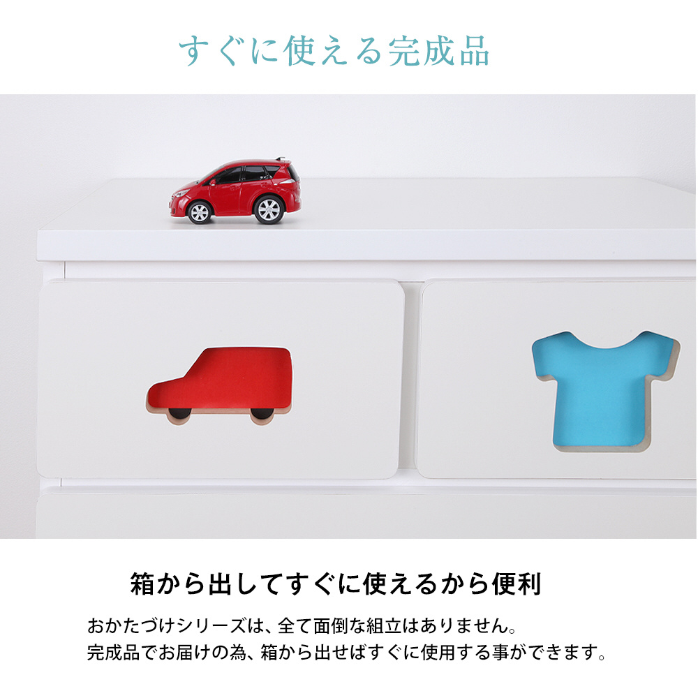 おかたづけシリーズは、全て面倒な組立はありません。完成品でお届けの為、箱から出せばすぐに使用する事ができます。