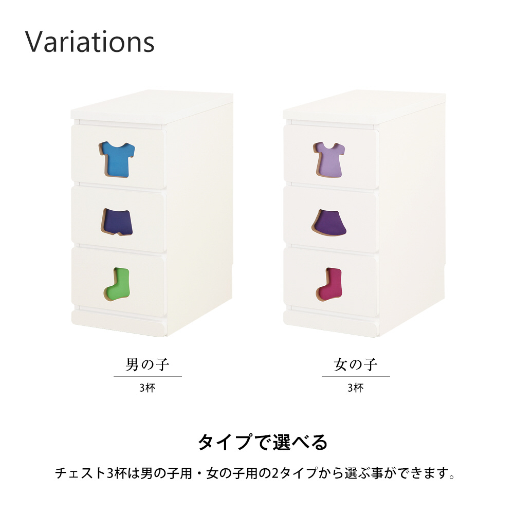 おかたづけしたくなるチェスト 3杯 男の子用 JAJAN ホワイト TSC-29MBW
