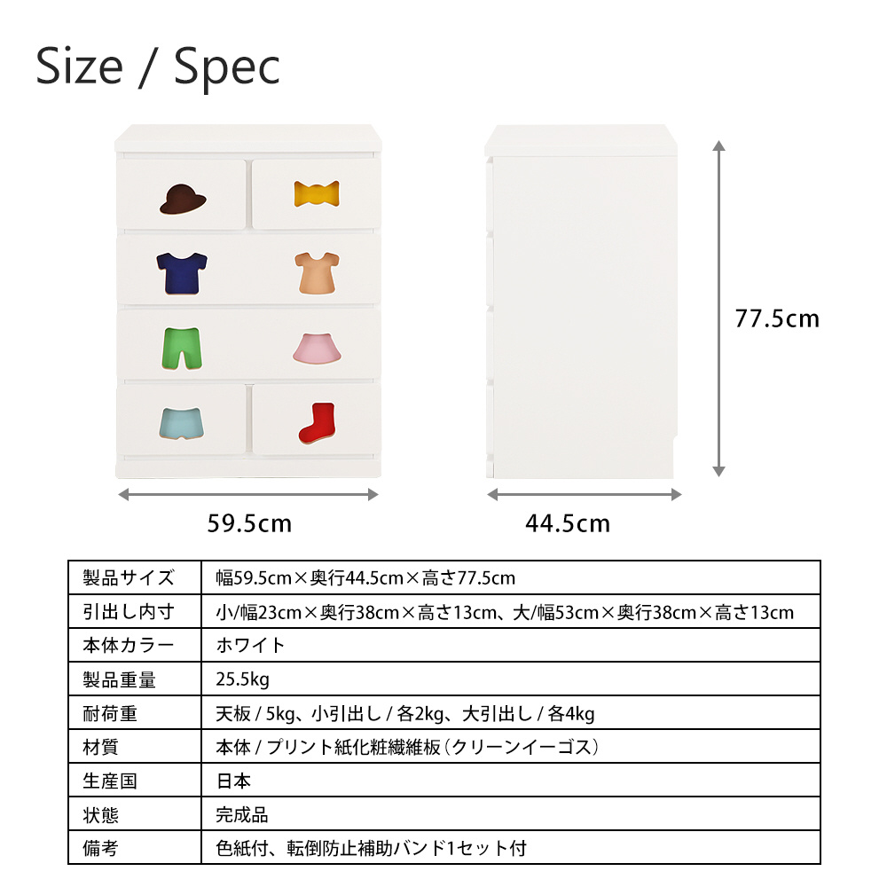 | 商品名 | おかたづけしたくなるチェスト 6杯 男女兼用 JAJAN ホワイト TSC-59HJW |