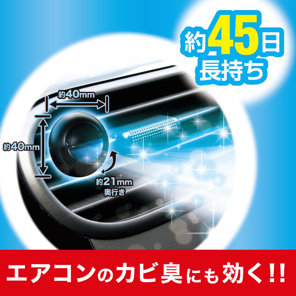 ●ペアリング消臭効果で、車内をまるごと消臭●車内のエアコン送風口に取り付けるだけで簡単●使い終わりが分かりやすいリキッドタイプ●約45日長持ち