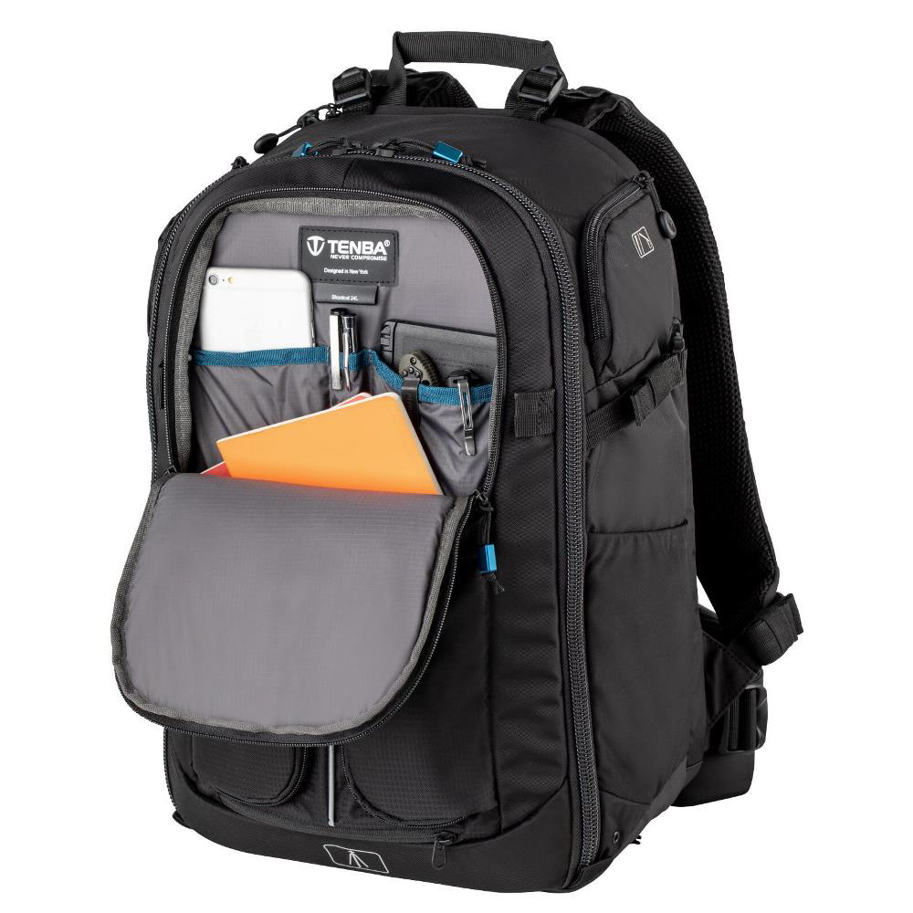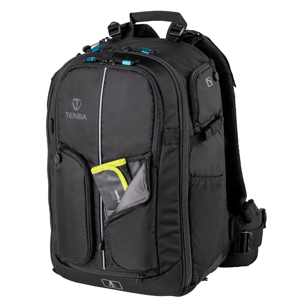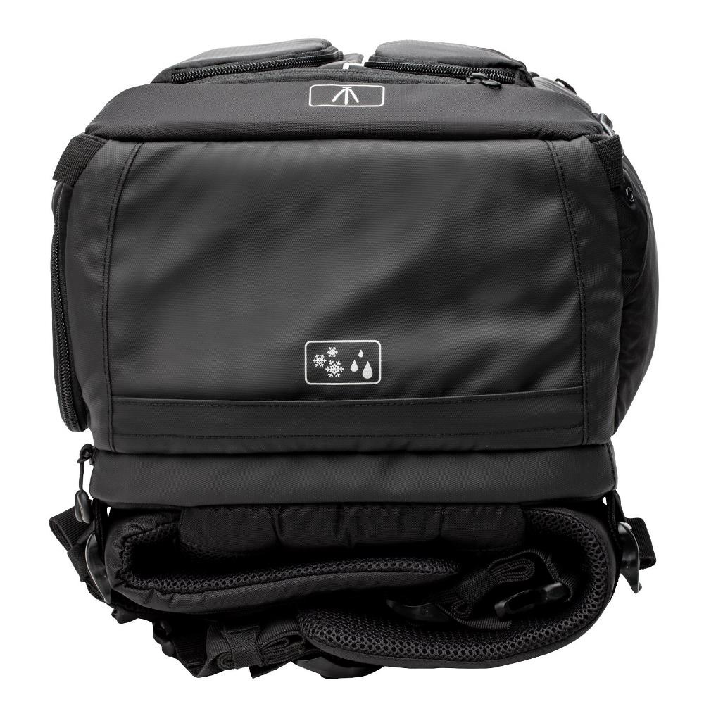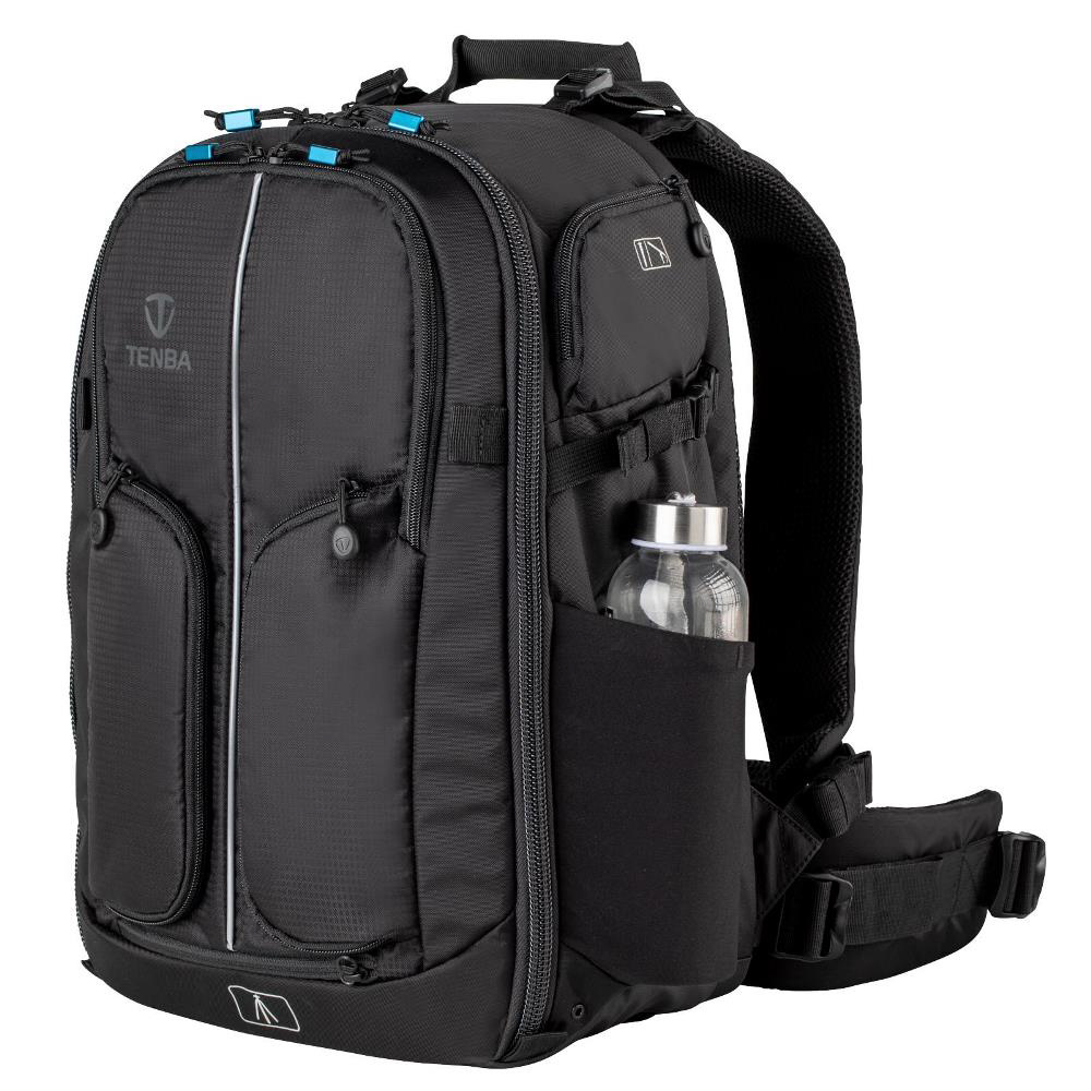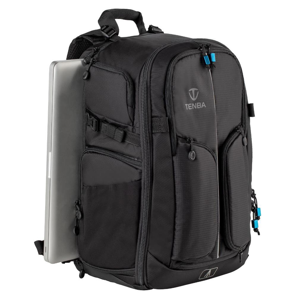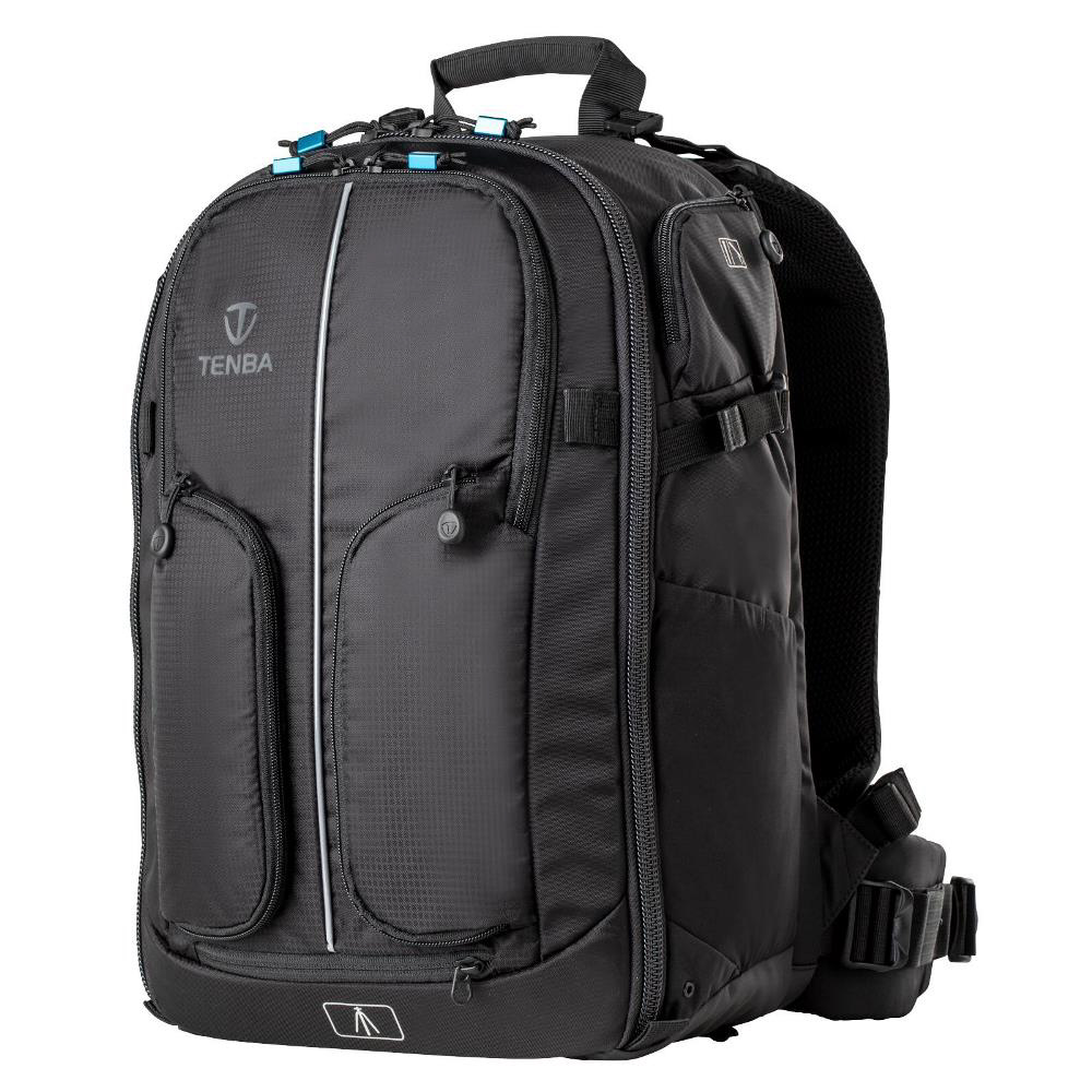 プロ向けのカメラシステム一式と15インチのラップトップPCが収まるフロントアクセスタイプ大型バックパック