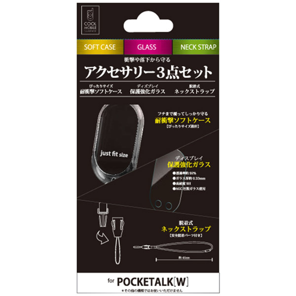 POCKETALK W専用 アクセサリー3点セット(TPUソフトケース/保護強化ガラス/ネックストラップ) CPTWS-01