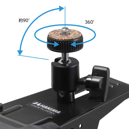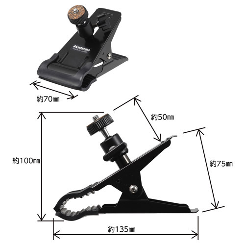 板やポールなどを挟んで固定できる、大型のカメラクリップです。