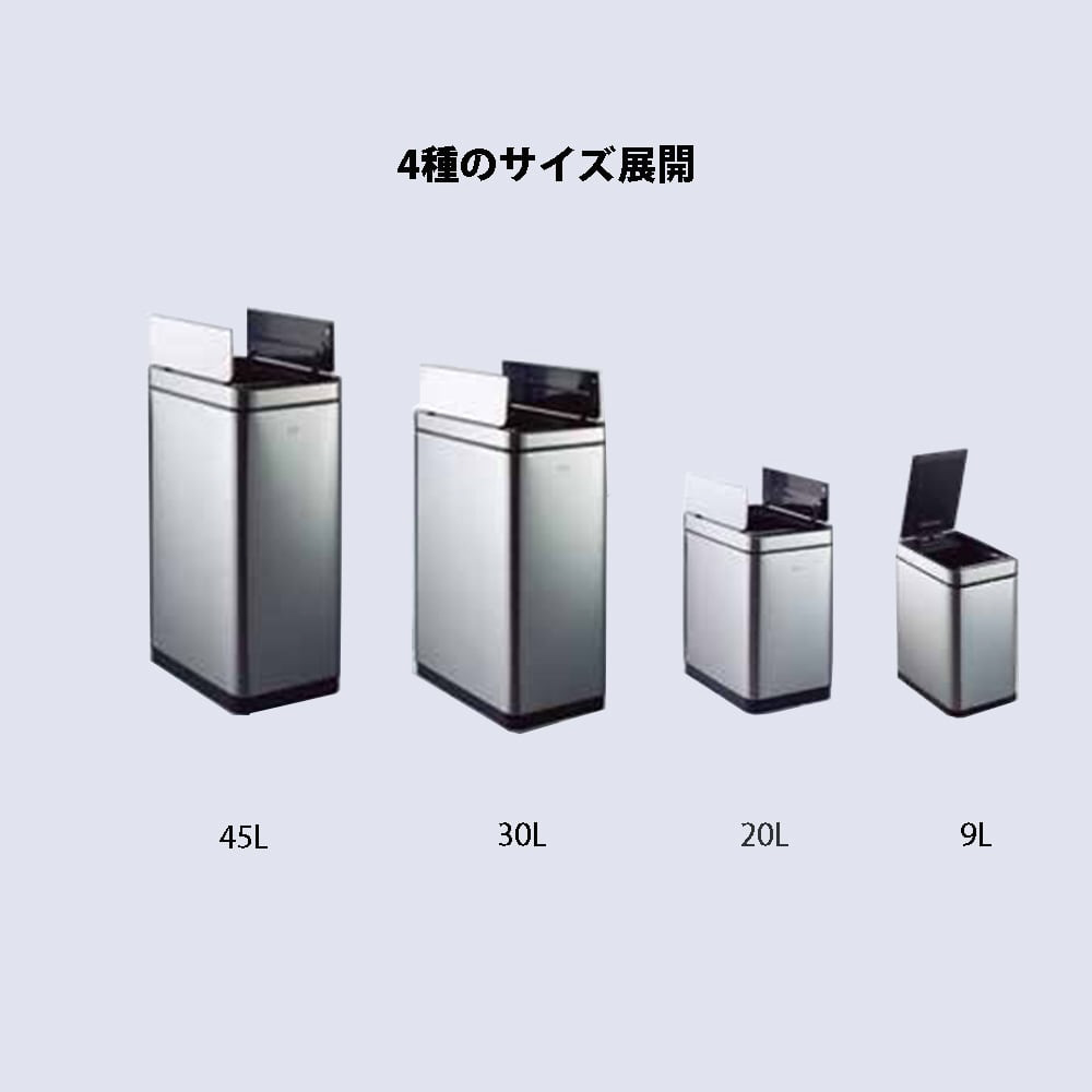センサー感知によりフタが開き、自動で閉まる容量30Lのゴミ箱です。