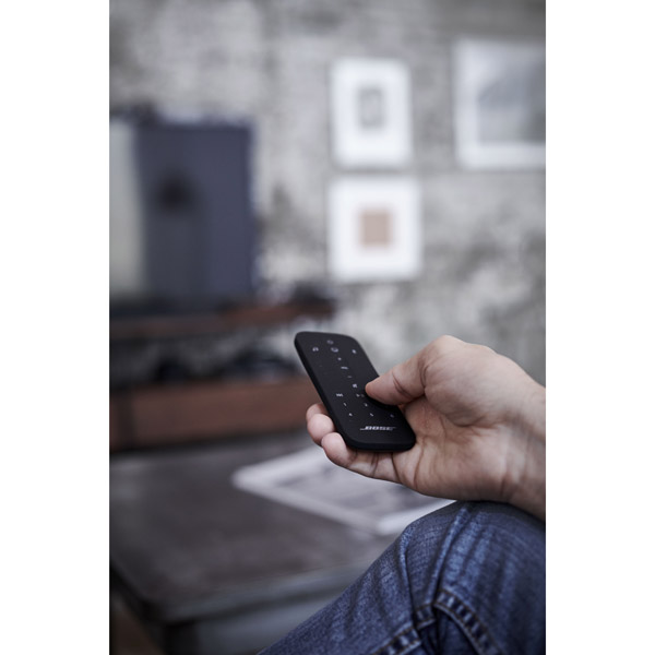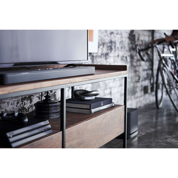インテリアに溶け込むサウンドバー、BOSE SOUNDBAR 500。テレビの下にすっきり収まる薄さ。部屋中に拡がる力強いサウンド。