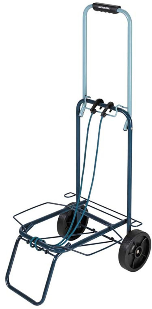耐荷重30kgのキャリーカートです。折りたたみ式なので収納時は平らにたためてスペースをとりません。
