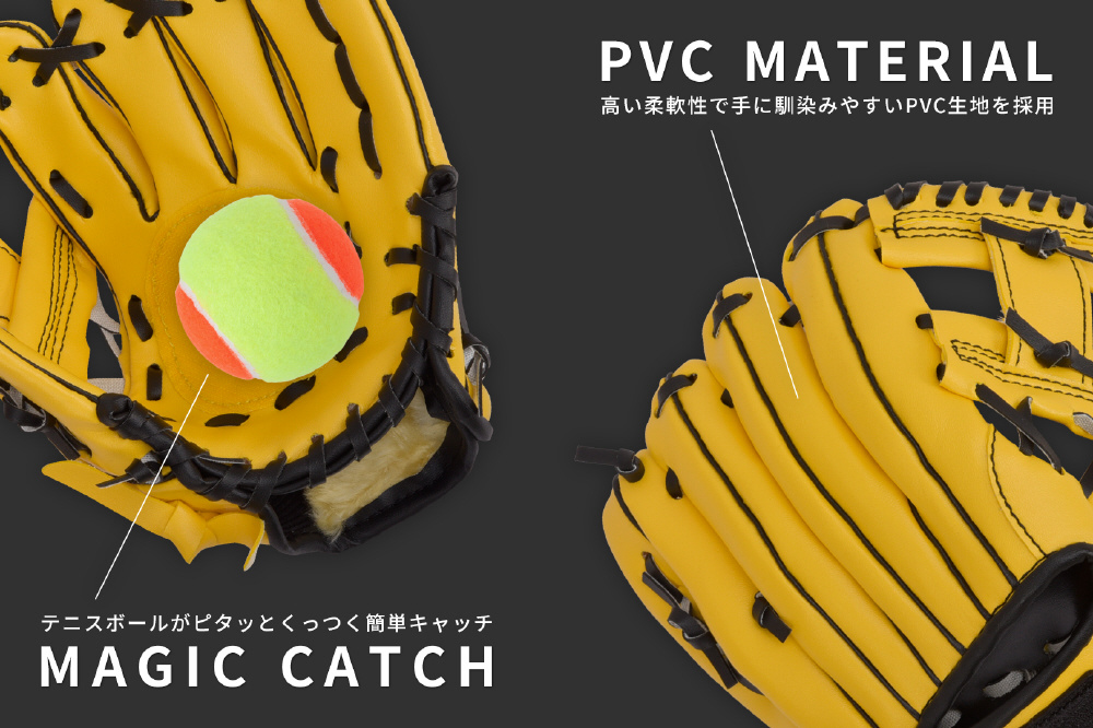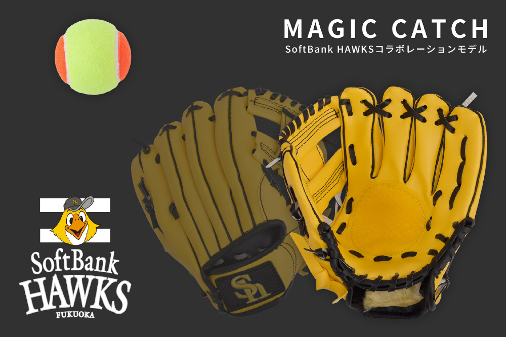 ソフトバンクホークス公式 野球グローブ マジックキャッチ ジュニア・キッズ用 8インチ 右投げ テニスボール付