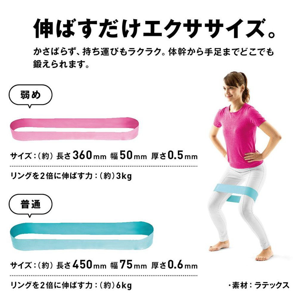 リングを2倍に伸ばした時の負荷ソフト:約3kg、ハード:約6kg