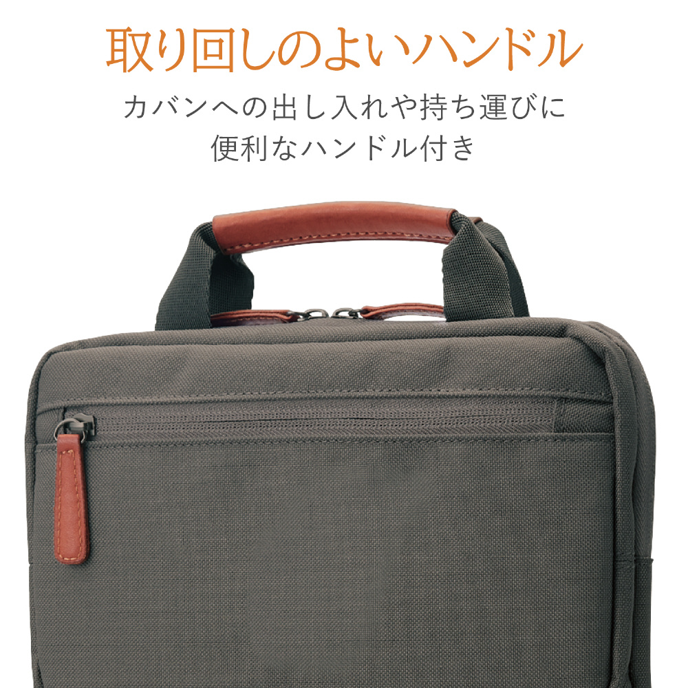 バックパックでの出し入れにも便利な縦型タイプ。 普段使いできるカジュアルさと、ビジネスでも役立つ機能性を両立した、縦型タイプのハンドル付きインナーバッグ。