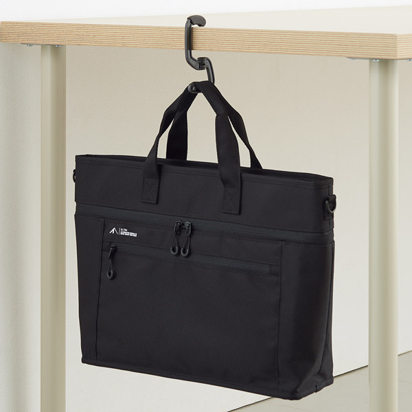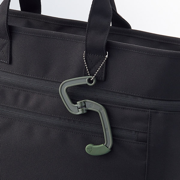 吊り下げ向きが変更できる携帯用バッグハンガー。