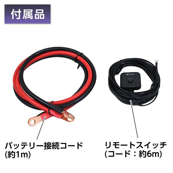 ■付属品:バッテリーコード(プラス・マイナス各1本)・リモートスイッチ