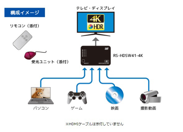 4K60Hz対応 4入力1出力 HDMI切替器 RS-HDSW41-4K