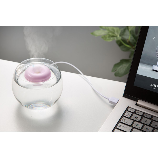 水に入れたコップに浮かべるだけでいつでもどこでも手軽に使える可愛らしいポータブル加湿器。