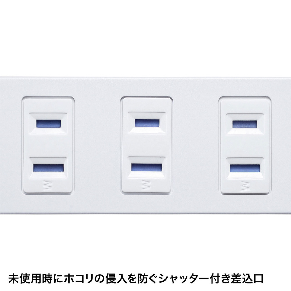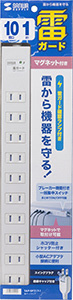 シャッター付き10個口でマグネットが装備された雷ガードタップ。一括集中スイッチ&ブレーカー付き。