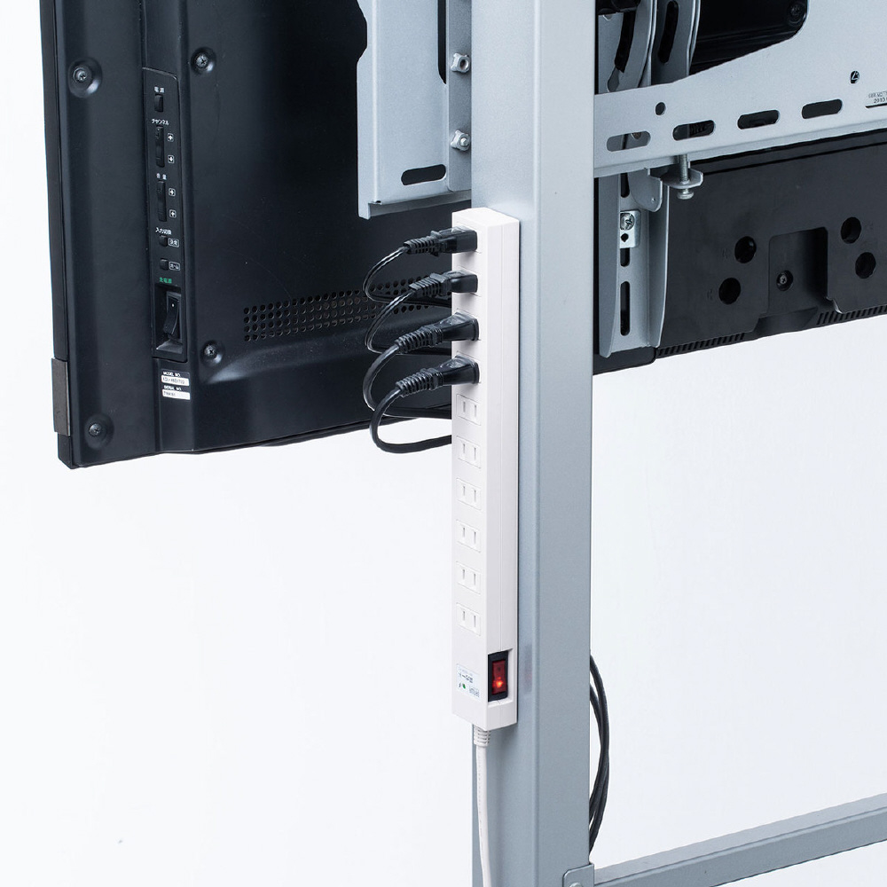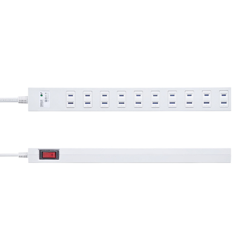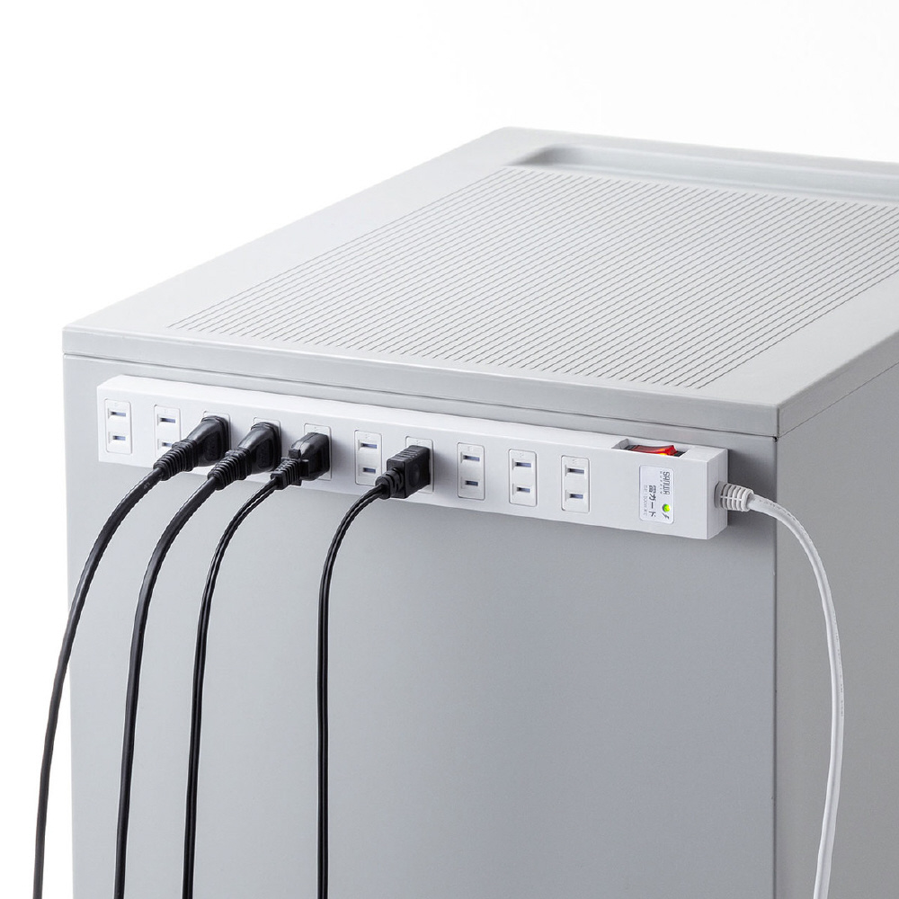 シャッター付き10個口でマグネットが装備された雷ガードタップ。一括集中スイッチ&ブレーカー付き。