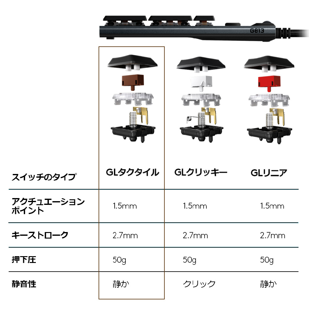 G813 最高峰の機能とデザインを誇る次世代の有線ゲーミングキーボード