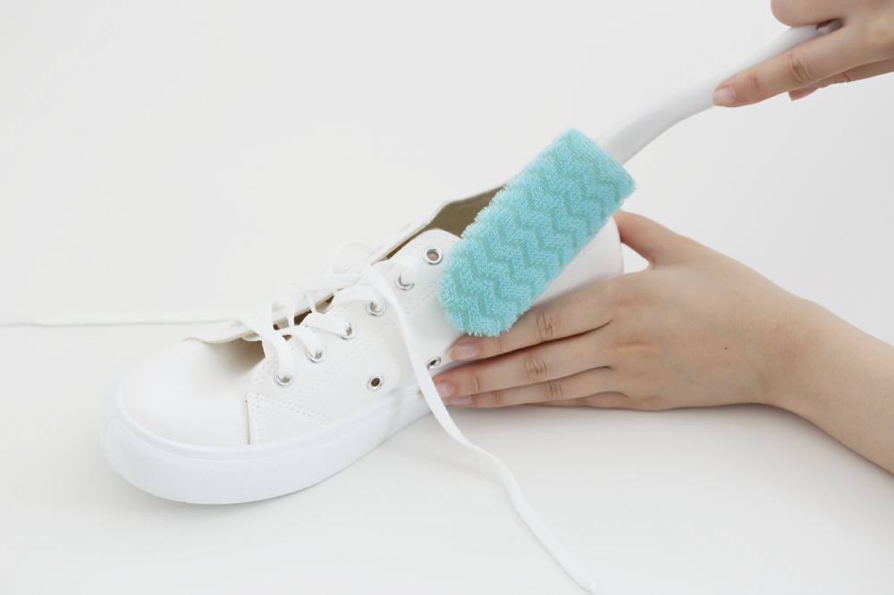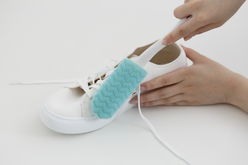 スリムなヘッドがくつのつま先まで届くので、奥まで洗えるシューズブラシです