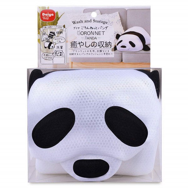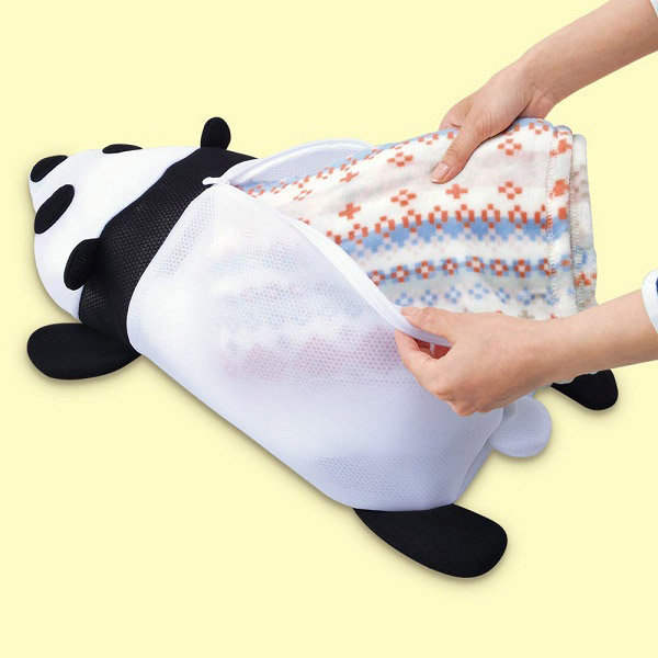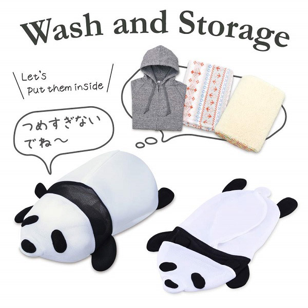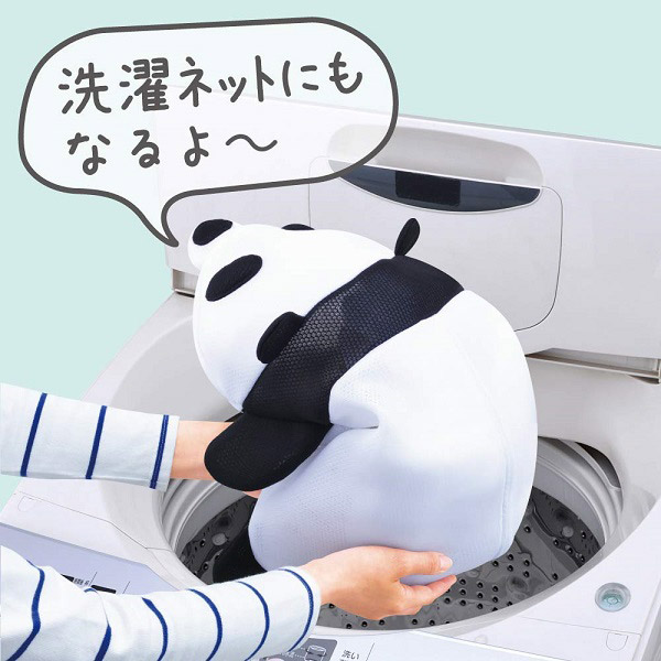 かわいいパンダのモチーフで大型洗濯ネットとして使用できます。洗濯物が優しく洗えるクッションメッシュ素材を採用。