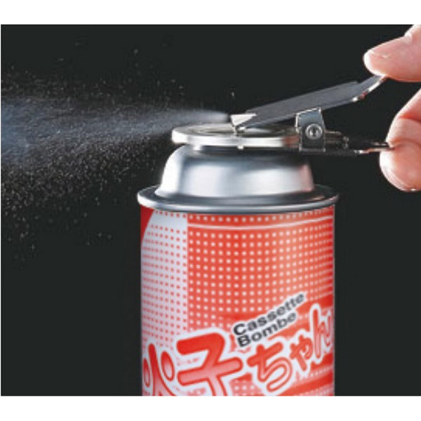 使い切れずに廃棄したいカセットボンベに挟むだけ、穴を開けずにガスが抜けるクリップです。