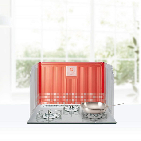 磁石4個で安定感◎両サイドをしっかりカバーオレンジ色のオシャレなコンロ周り油汚れ防止パネルキッチンを明るくオシャレに着飾ります。