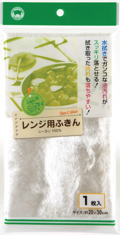 水拭きでガンコな油汚れがスッキリ落とせる。レーヨン糸が密接に起毛していますので、水を含ませると油汚れなどをよく拭き取ります。