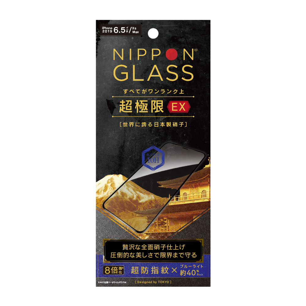 iPhone 11 Pro Max 6.5インチ用 超極限EX 8倍強い全面硝子BL低減BK TY-IP19L-GM3-DXBCCBK
