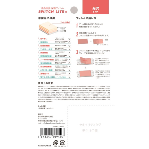 | 商品名 | Switch Lite用 液晶保護フィルム 光沢タイプ YSBRNSW001 【Switch Lite】 |