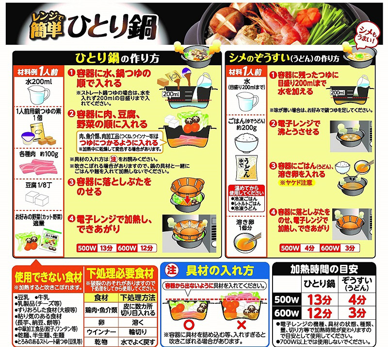 電子レンジで簡単に、一人分の鍋料理が作れる調理容器です。