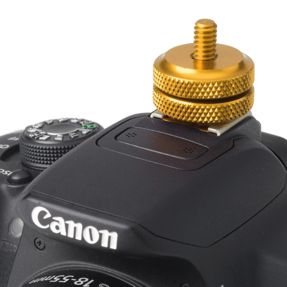 カメラアクセサリーシューに三脚用の1/4インチ対応アクセサリーを取り付け可能にするアダプターです。