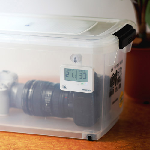 カメラ・レンズの保管場所の湿度と温度管理に。保管ボックスの外から確認がしやすいアーム型吸盤付き。
