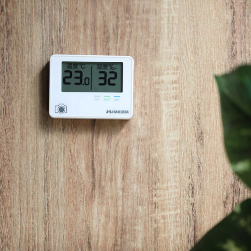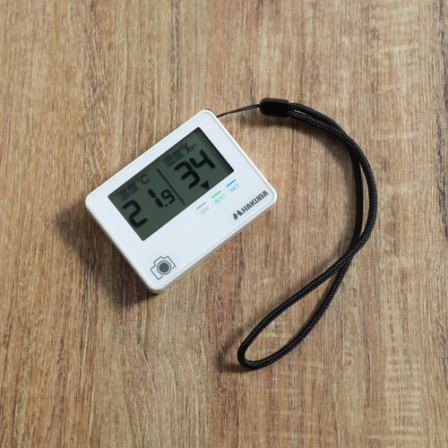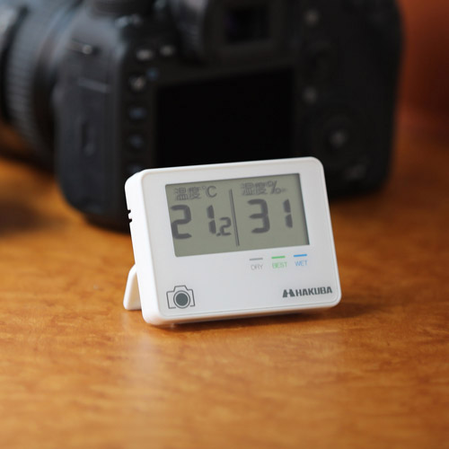 カメラ・レンズの保管場所の湿度と温度管理に役立つ、デジタル温湿度計です。