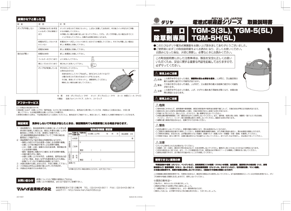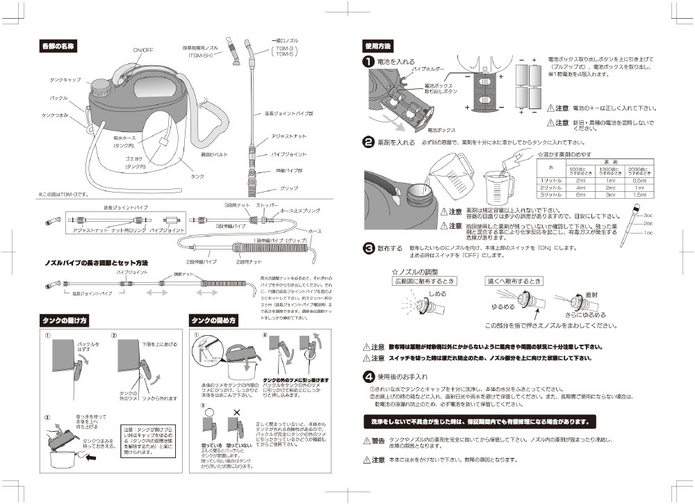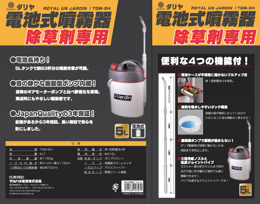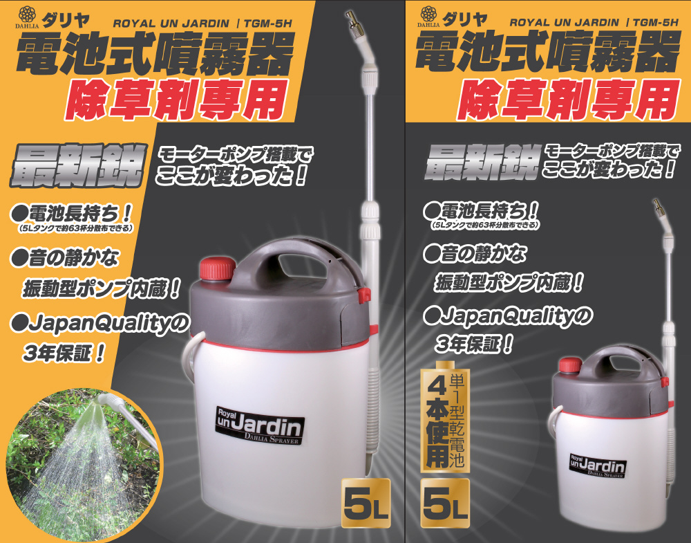 静音 電池式噴霧器 ロイヤルアンジャルダン 5L 除草剤専用ノズル TGM-5H