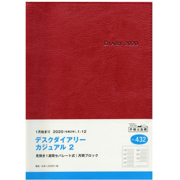 | 商品名 | 2020年版1月始まり デスクダイアリー カジュアル2 セパレート レッド No.432 [ウィークリー /A5 /月曜日始まり] |
