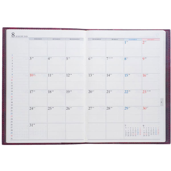 | 仕様2 | ■レイアウト: 1月始まり/月曜始まり ■装丁仕様: 皮革調 |