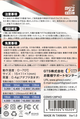 microSDXCカード GTS GSMS128PAD [128GB /Class10] 【sof001】