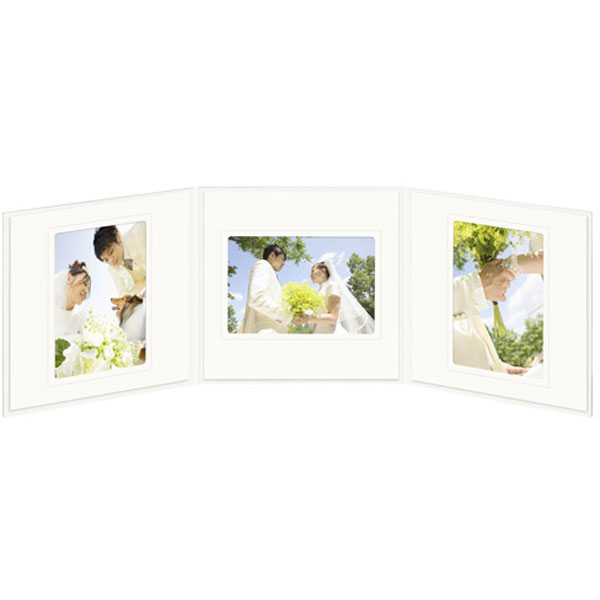 中額はタテ・ヨコどちらの写真にも対応する後付けタイプです。中額の中抜きの外周に施した空押しのライン装飾が写真を引き立たせます。